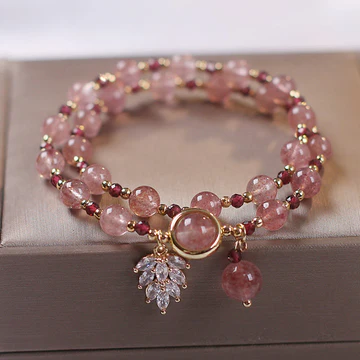Embrace the loving energy of the Buddha Stones Natural Strawberry Quartz Love Healing Maple Leaf Charm Double Wrap Bracelet. Crafted with high-quality materials, this bracelet radiates love, healing, and positivity. Wrap it around your wrist and feel the uplifting power of Strawberry Quartz.